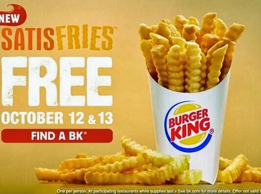 Sunday October 13 is the last day to get your Totally FREE, Low Calorie SatisFRIES at a Burger King near you. No coupon necessary!